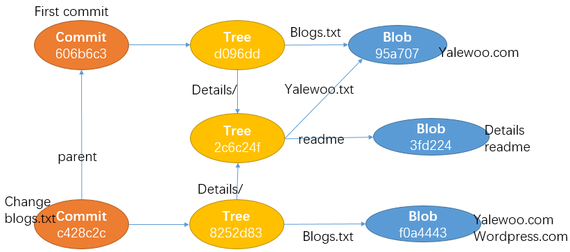 上次我们讲到git中的object: commit, tree和blob。一个commit指向了一个tree,这个tree就代表了我们所有文件的根目录。tree可以包含任意多个其他的tree以及blob, blob可以存储任意二进制序列,也就是文件内容。这非常像一个文件系统。