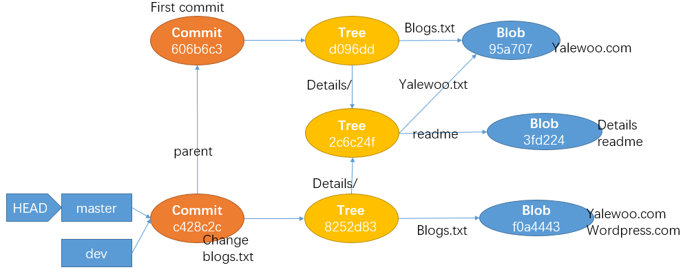 可以看到,分支其实就是记录了一个commit。这里的c428c2c就是我们最新的commit的SHA1.