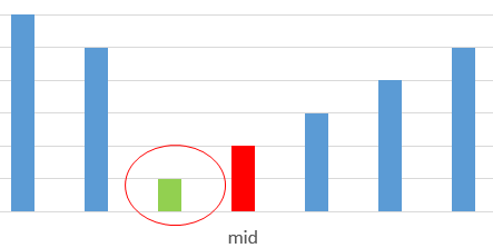 1.1 如果mid位于旋转数组的左半部分 那么小于a[mid]的元素分布在左右两部分都有(绿色)